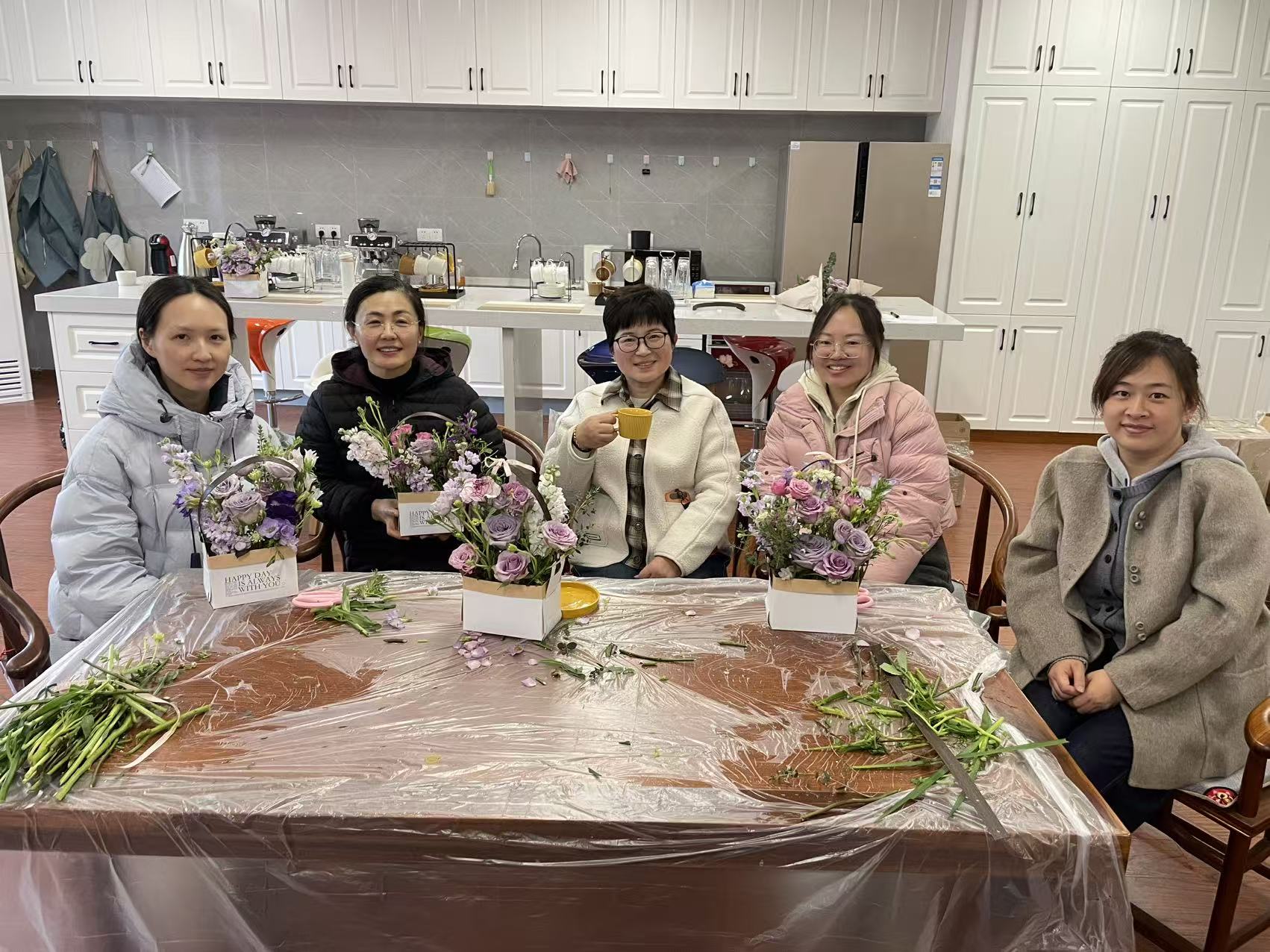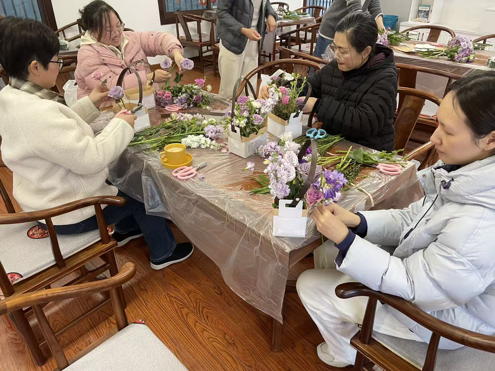 女教师们兴致盎然,认真聆听、动手实践,在剪枝、搭配、塑形中释放压力,交流心得。平日里深耕讲台、履职尽责的她们,此刻化身巧手花艺师,将审美与情感融入作品,每一盆花艺都独具匠心、雅致动人。