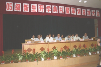 9月4日下午3:00,我校在B区报告厅隆重举行2005级新生开学典礼暨军训总结大会。冯波、李平清、熊海滨、林国新、张伟等校领导出席了会议,各处室、专业科主要负责人也出席了典礼。 典礼在庄严的国歌声中开始。随后,林国新副校长就05级新生在上海市东海青少年社会实践基地进行为期7天的军训情况作了总结。李平清副校长向同学们提出了希望,要求大家规范个人行为,养成良好的学习习惯,力争取得满意的成绩。教师代表蔺亚文结合班级和自己的经历,向05级新同学提出了殷切期望。新生代表也向全体师生表示了立志成才的决心。最后,由主持学校工作的教育局副局长冯波代表学校做了热情洋溢的讲话,并向05级新生提出了希望和要求,鼓励他们通过自身努力尽快成才。 | |