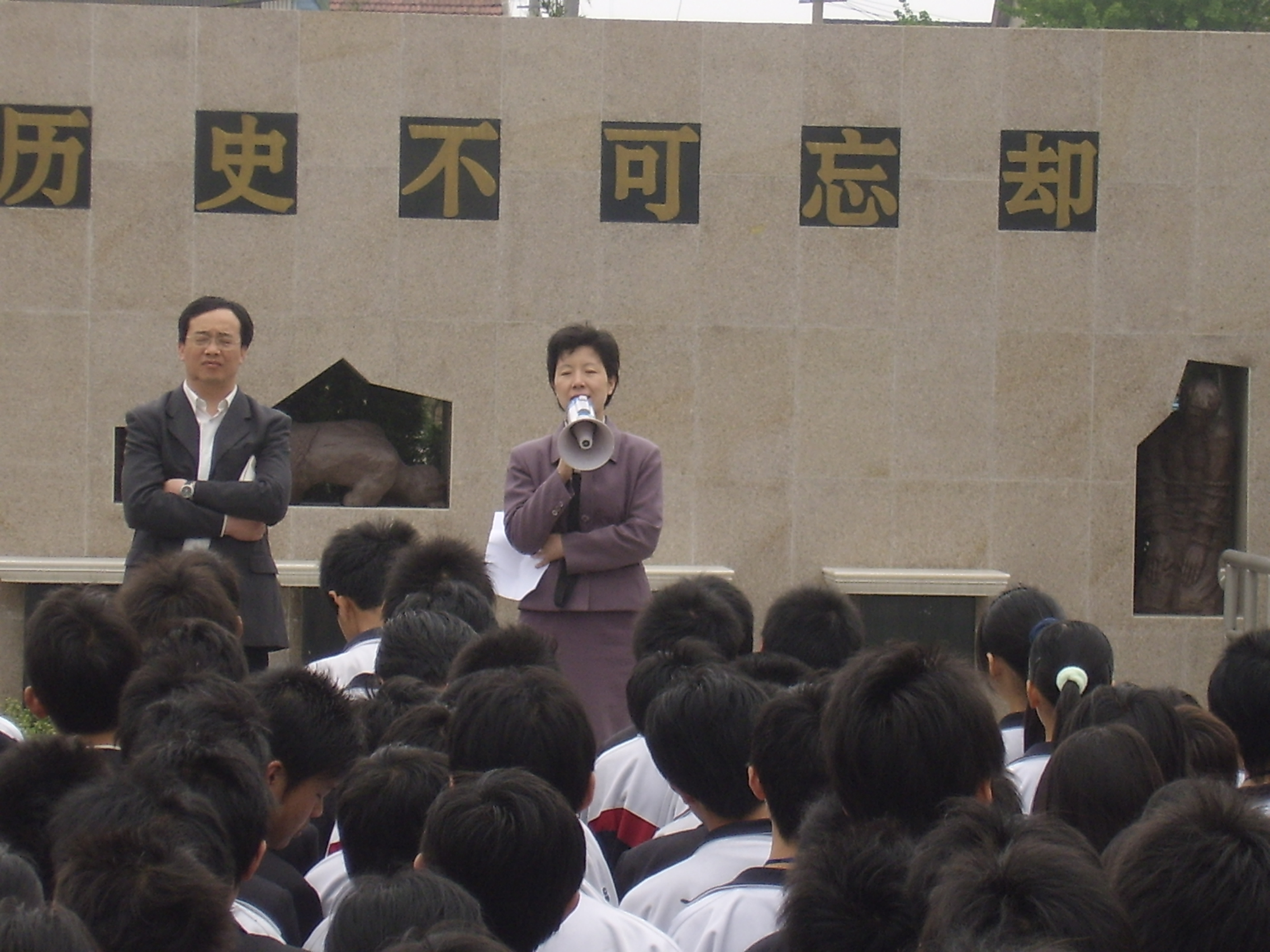 为了配合学校全面开展“两纲”教育活动,教育学生不忘历史,唤起学生们的民族热情和爱国主义精神。05教改辅导三组的学生在组长汪伟东老师的带领下,于2006年4月26日来到金山卫侵华日军登陆处遗址纪念地举行了以“缅怀先烈,发愤图强”为主题的民族教育活动及新团员宣誓活动。
