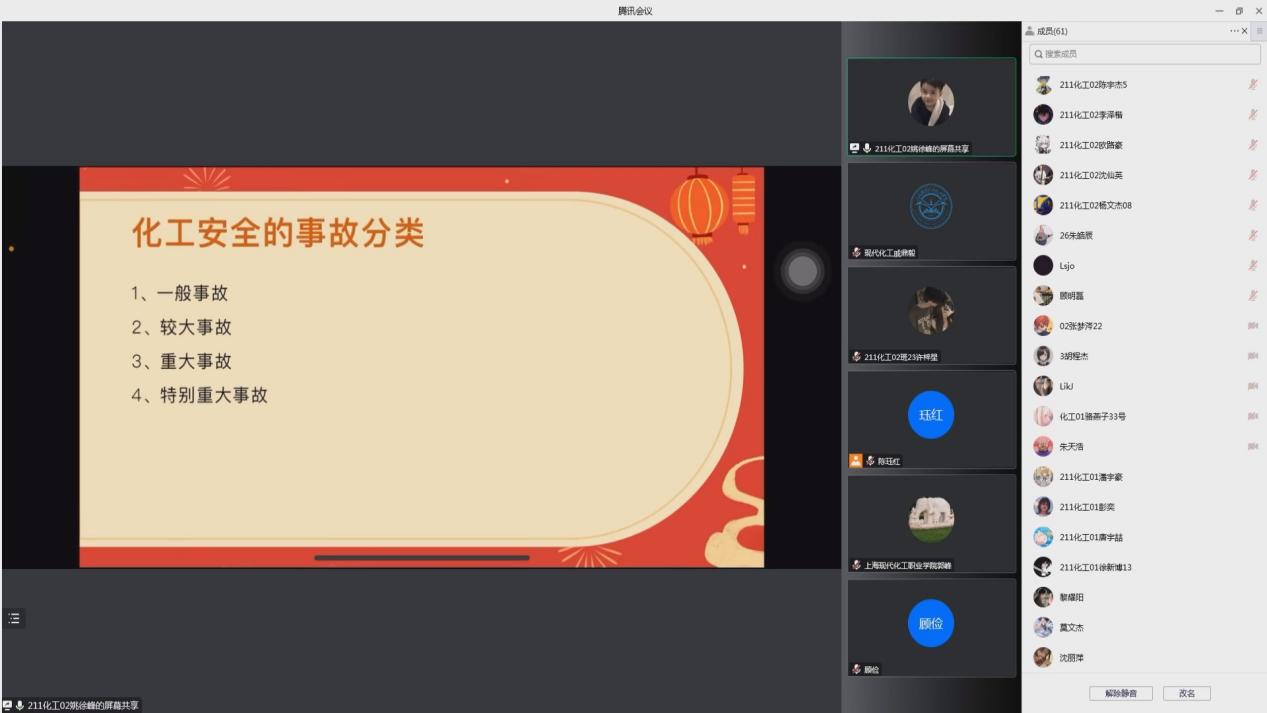 2023年1月3日至6日,在带队教师们的带领下,211化工02班31位学生开展了为期4天的实习。对于我校化学工艺专业的学生来说,实习锻炼是理论联系实际的一个学习过程,是学生将所学的教育理论知识转化为动手能力,向社会角色过渡的重要环节。受疫情原因,本次企业实践改为线上,校方与上海石化积极沟通,共同克服困难,制定针对性课程,顺利开展此次特殊的企业实习。学生们也通过网络,得以一听一线企业职工的授课,一窥当今的企业现况,为后续的学习与工作的打下坚实的基础。