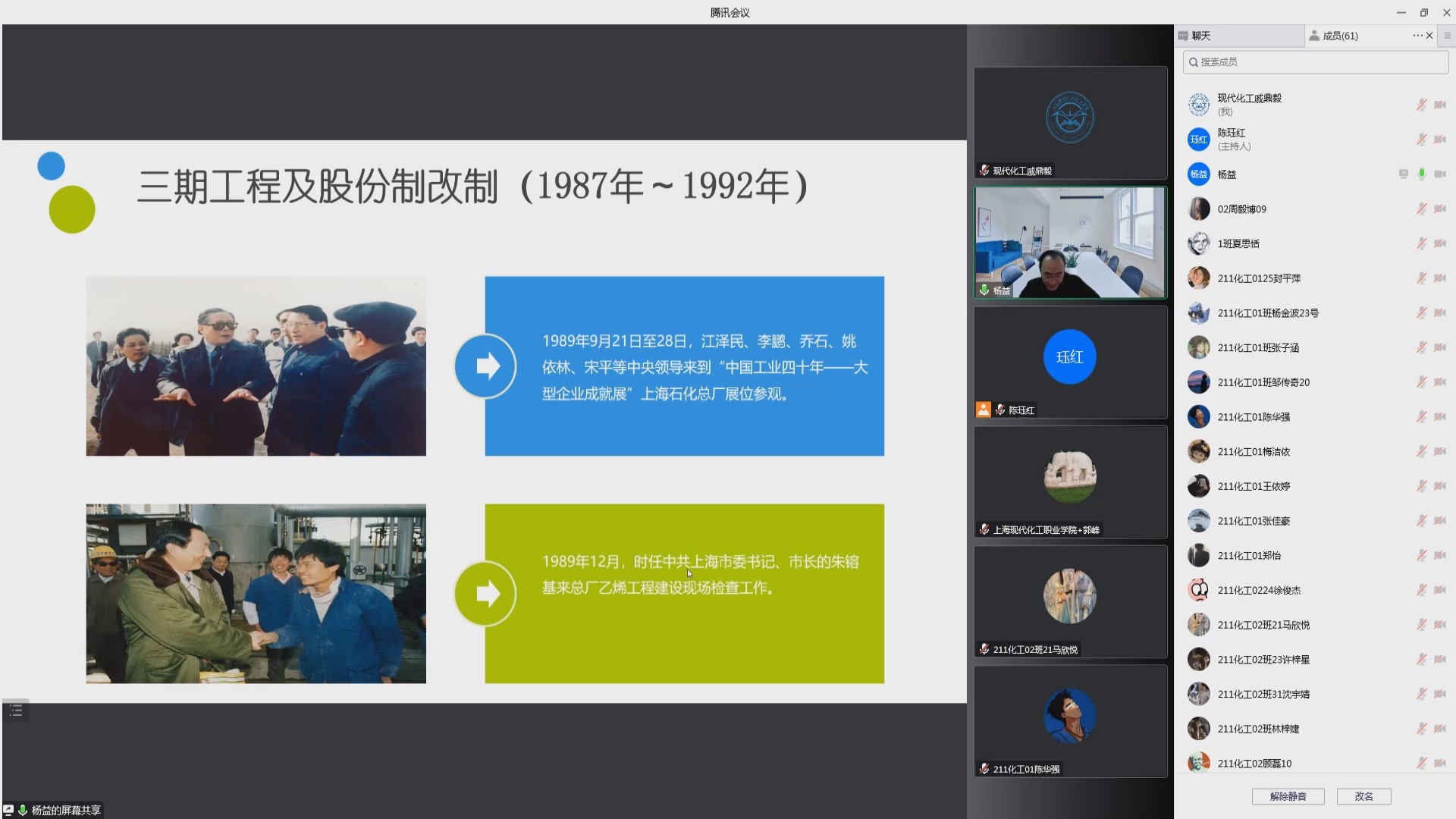 1月5日上午由上海石化宣传部部长杨益老师讲解上海石化企业文化,杨老师依次讲解上海石化的公司简介、发展故事、文化历程与现在未来并结合杨老师的个人感悟。结合当下的化工行业发展情况,为同学们讲述上海石化的来历与其中的挫折与成长,对于上海石化的发展杨老师如数家珍,为同学们一一介绍上海石化如何建厂、如何进行一期、二期、三期工程的建设、如何改制、如何上市、以及随后的四五六期工程的建设,也介绍了上海石化三守三人时期那些兢兢业业的一线职工平凡的伟大,让同学们对上海石化有了不停步与表面而更深入更具人文气息的了解。