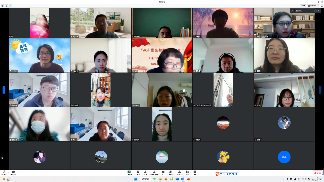 光阴似箭,日月如梭,时间悄然无声的从指间滑过,一眨眼,一个学期就在我们的学习和工作中即将结束。为了更好地总结本学期的各项工作,确保期末工作有序地收尾,保证师生假期期间安全,2023年1月12日上午9:30,化学工程学院借助腾讯会议平台召开了全体教师大会,大会由胡迪君院长主持,支部书记王峥崎,副院长沈端、杨辽原及全体教师参会。