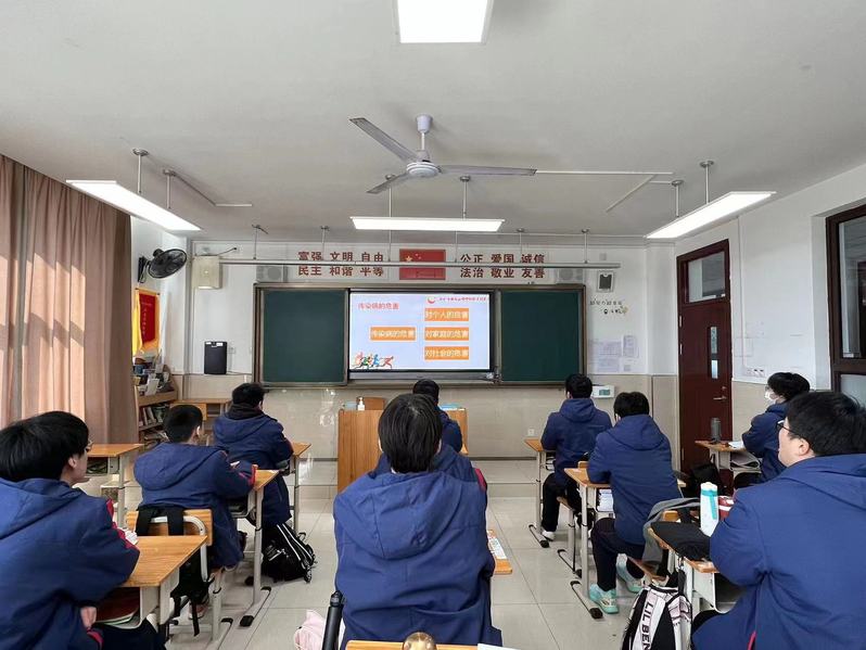 下午,先观看了三个视频,同学们了解了新冠的传染方式和病理,新冠肺炎的时代已经过去,这场战疫终于落下帷幕,同学们要调整好心态,恢复好的学习状态,积极的投入到接下来的学习生活中。