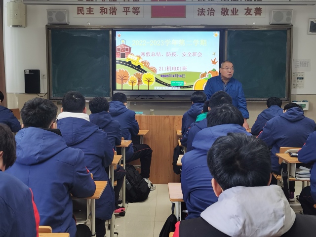 春归人也归。2月13日是春季学期开课首日,乍暖还寒的校园迎来了学子们的回归。一大早校领导、学生系统中层干部在校门口迎接大家到来。学子们朝气蓬勃地踏上新征程。上午在班主任的指挥下学生们有序进行着开学前的各种准备,打扫卫生、领取新书本、出黑板报。