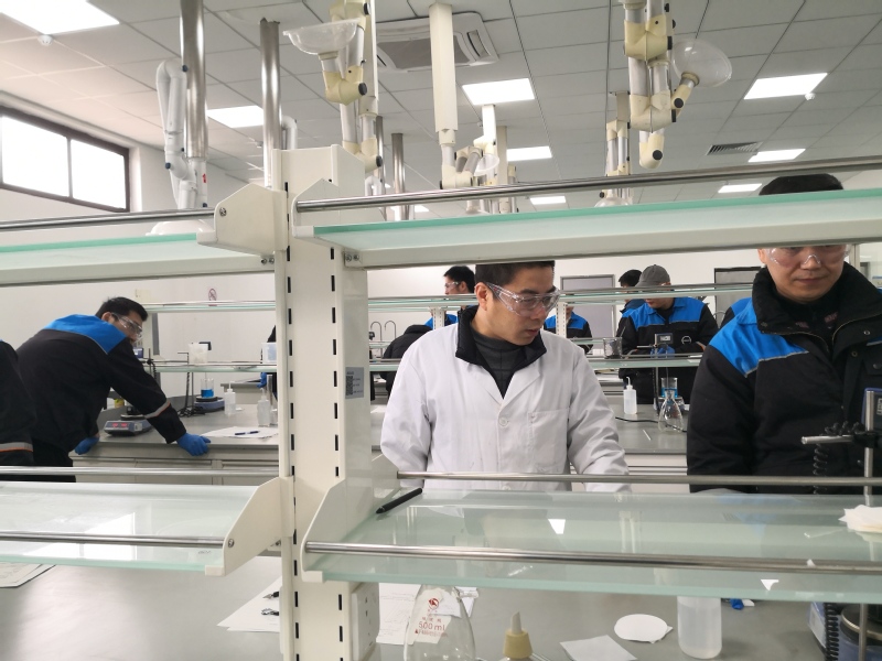 盐溶液考核参照当初制定的考核大纲,以实践操作的形式严格执行。首先书写工作计划,接着进入实验室需穿戴好工作服、防护眼镜、防护手套,按照自己事先制定的计划进行执行操作。包括搭建装置、称量试剂、数据查表、增盐计算、含量测定,全部独立完成。参加学习尽管都是科思创企业各部门的班长,但是通过本门课程的学习,进一步掌握实验室安全规范、操作规范,同时学习了工作计划的制定、如何组织实施、最后如何组织评价,以及过程性评价与结果性评价的权重如何分配。