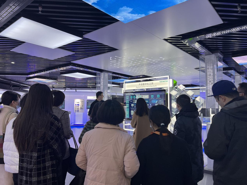 为进一步推进高职新专业建设,优化机电一体化技术应用、数字化设计与制造技术专业及工业互联网应用专业人才培养定位,为智能制造专业建设升级思路,保障人才培养质量,拓宽教师专业建设视野,3月3日下午,智能制造学院院长吴敏带领高职新专业建设小组教师共15人赴苏州西门子电器有限公司深入了解西门子面向未来、数字孪生以及涵盖产品与生产全生命周期的数字化生产方案。