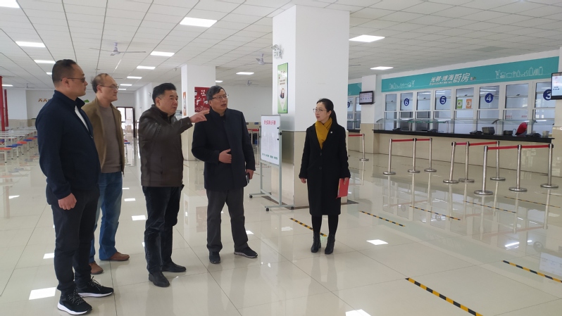 沈栋鑫老师对学校校园、实训大楼和师生食堂进行了参观和调研。后勤保障处沈晨阳主任和赵东晓老师就食堂餐厅、后厨、厨房间、供应间、仓库、调味品库等场所、食堂的“六T”管理制度和食品安全卫生管理等作了一一介绍。沈老师对学校食堂管理和卫生工作进行了肯定,并对学校周一学生来校交通情况、学生住宿情况、放学时周边安保情况、学校高职办学中师资情况等其他方面问题进行了深入细致的了解和沟通。