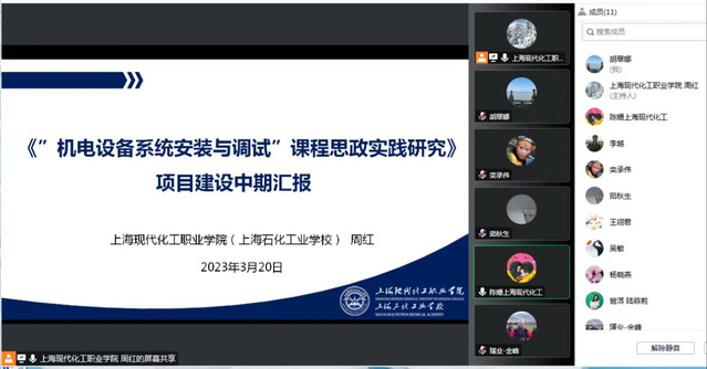 时光飞逝,2022 年度金山区职业教育集团项目转眼到了项目中期检查时节。3月20日,《机电设备系统安装与调试课程思政实践研究》课题组紧锣密鼓地组织了两场项目活动。