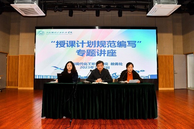 为持续推进教学文件编写规范,引导广大教师高质量做好授课计划答辩等工作,3月23日下午14:45,我校会议中心举办了一场“授课计划规范编写”专题讲座。上海现代化工职业学院副校长黄汉军、各二级学院青年教师及部分教研组集体参加了本次讲座,化学工程学院副院长沈端为主讲人,教务处副主任王翊君主持。