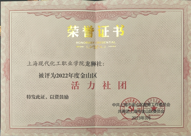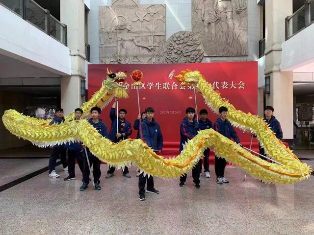 会前,我校龙狮社团助力学代会开幕,在与会领导与全区代表前展示了传统龙文化魅力。会上,徐豪为“2022年金山区活力社团”颁奖,我校龙狮社荣获嘉奖。