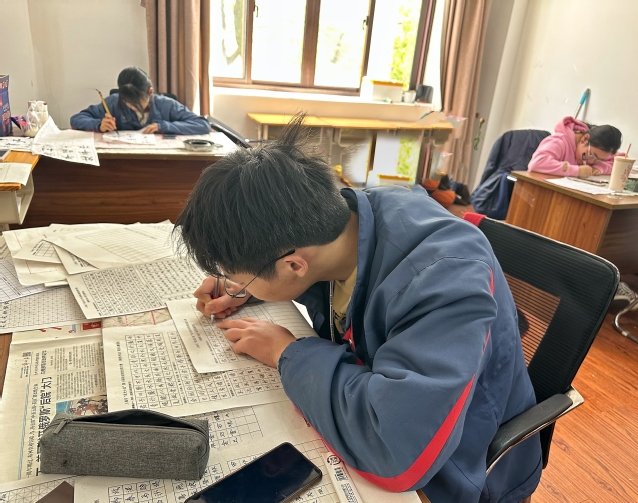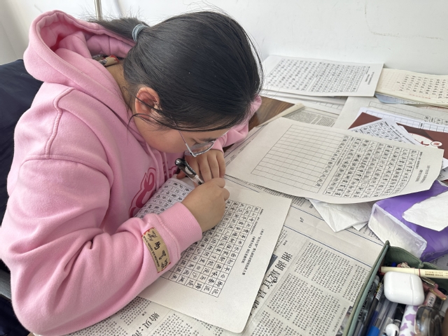 第十届星光计划“硬笔书法”项目正在紧锣密鼓的备赛中,参加此项赛事的三位同学在指导老师朱荷生的带领下,正全身心投入到备赛中。