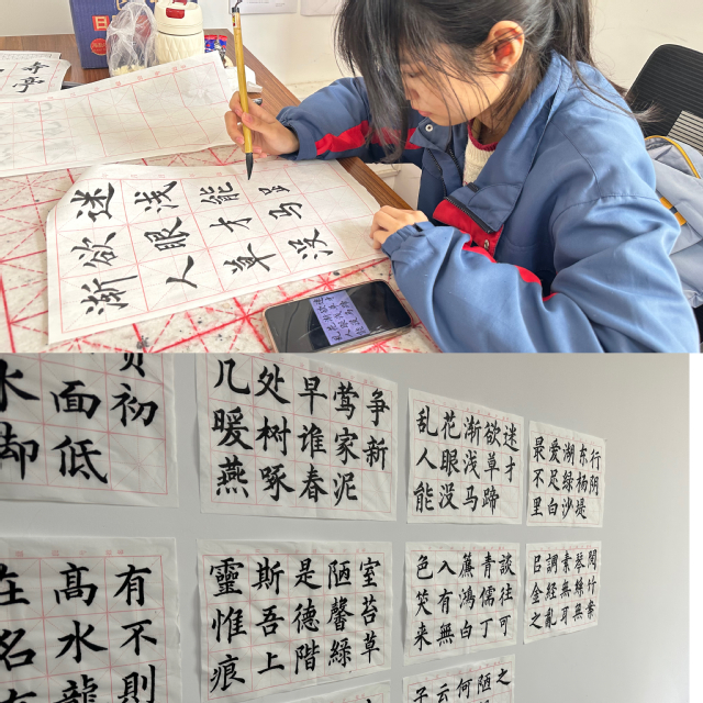 从接到参赛通知到现今,备赛也已一月有余,同学们在日复一日的书写中,不仅收获了良好的书写习惯,还体会到了书法的乐趣,磨练了自己的意志和品格,以恒心去培养恒心,以耐力去培养耐力,以毅力去培养毅力。