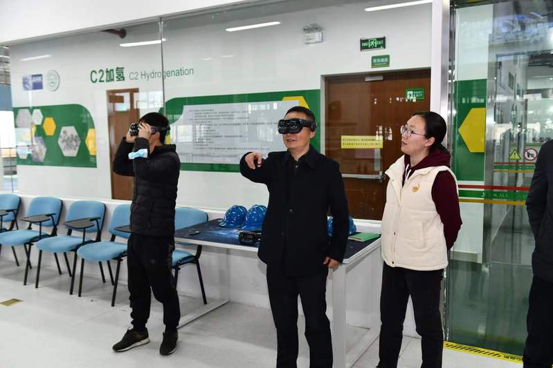 黄遥一行在学院领导的陪同下依次参观了跨企业培训中心和化工综合实训大楼,详细了解了实训室建设、实训室管理、药品管理等基本情况,现场体验了碳二加氢装置MR操作,对我校办学理念、办学经验和取得的成果给予高度评价,表示不虚此行。