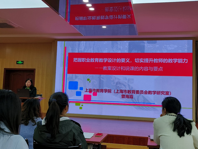 为持续提升教师教学设计与说课能力,促进教师教学能力提升,3月29日,由上海市教师教育学院(上海市教育委员会教学研究室)职成教部部长,正高级讲师曾海霞老师在上海现代化工职业学院B区多功能厅开设“教学设计和说课”专题讲座。徐卫东市级及区级名师工作室全体学员参加此次活动。