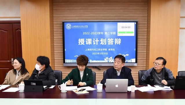 本学期授课计划答辩人员由学校在青年教师和近三年入校教师中选出。答辩专家组由周红担任组长,栾承伟、朱水清、董少娣及胡丽丹5人共同组成。上海现代化工职业学院副校长黄汉军、挂职副校长严小丽出席了此次答辩。各二级学院教学院长及教研组长观摩了本次答辩。
