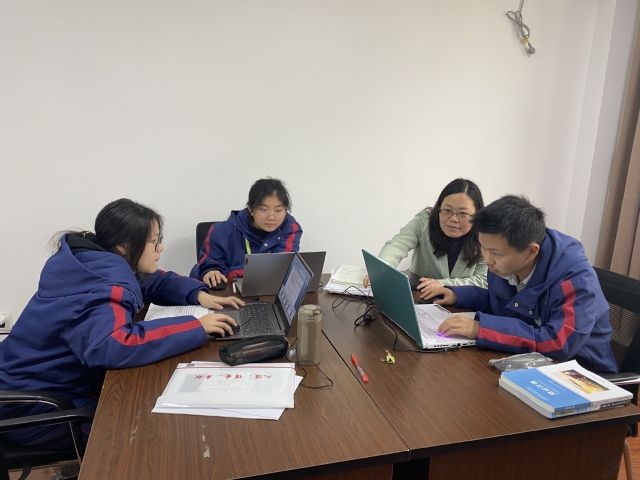 由于参赛选手要学习的新知识比较多,指导老师只能从最基础的内容开始进行培训。每个模块通常都是由几个选手同时进行,完成后大家会互相讨论、相互检查挑出毛病,做得好的同学也会毫无保留的分享自己的独到之处给大家,以便大家都能更好地提升。备赛从寒假就开始,冯维芹、时明荣两位指导老师利用腾讯会议的形式给学生进行了前期的指导,又利用问卷星等方式给参赛选手们分别布置了针对性的任务。线上线下培训的无缝衔接,让选手们受益良多。抽签确定最终选手后,备战的学生放弃休息时间,热情高涨地投入集训之中,夜以继日勤学苦练,展现了锲而不舍、精益求精的精神风貌。两位指导老师建立了科学量化的标准,制定分阶段的训练计划,反复讲解、精心指导,集训现场热火朝天。