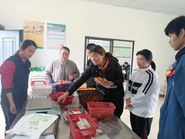 最后,左经理带领殷老师与李老师到学生实习工作现场,与学生共同交流了作业流程和工作要点。殷老师现身客串了一下顾客购买小番茄,对如何接待、推销直至送出顾客全程进行详细指导。