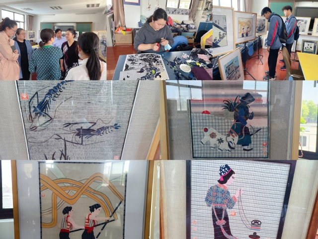 区残联理事长蒋卫平也亲自赶到了非遗中心,就“土布贴画”对特殊学生实习就业、职业发展,以及土布贴画本身的传承和发展展开了详细地讨论。土布贴画非物质文化遗产是珍贵的、具有重要价值的文化信息资源,也是金山历史的真实见证。土布贴画为特殊学生提供实习就业渠道,因特殊学生的参与,拓宽了金山非遗手艺和匠人精神的流传渠道,使得教育和非遗艺术双向奔赴,共同开启更加美好的明天。