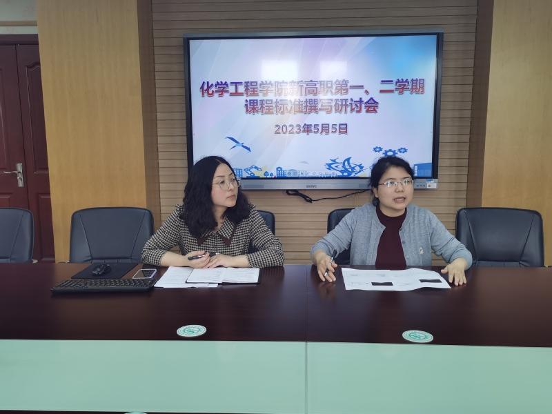 为促进二级学院新高职课程建设工作,提高课程教学水平,规范课程管理,5月5日中午,化学工程学院在厚德楼三楼会议室召开新高职第一、二学期专业课程标准撰写研讨会。本次研讨会由化学工程学院副院长沈端主持,特邀科研处黄慧娟老师与新高职第一、二学期相关专业课程教师共同参会。