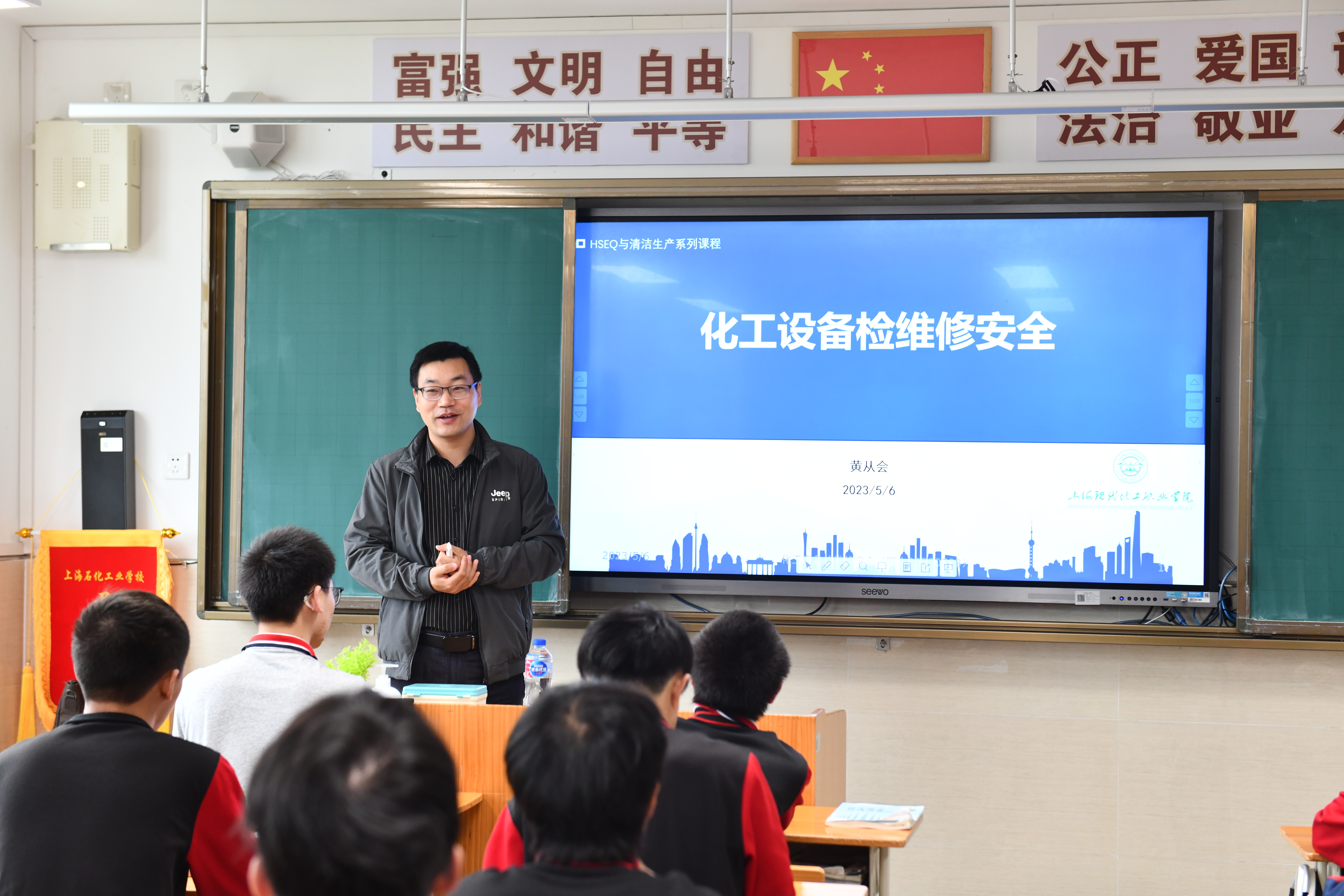 5月6日,化学工程学院特邀赢创特种化学上海有限公司中国多用户基地ESH部门物流&化学品安全经理黄从会为210应用化工班开设了《化工设备检维修安全》专题讲座。