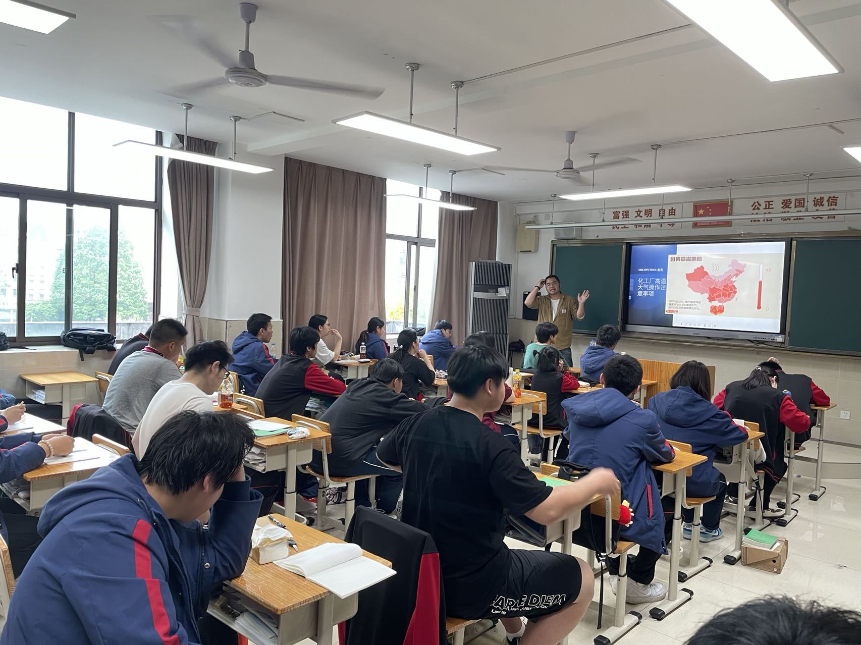 5月6日,在善学楼307教室,科思创专家俞亮老师开展了主题为“化工厂高温天操作注意事项”的公开课。