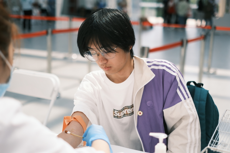 四月下旬,校团委接到由区红十字会、团区委联合开展的2023年金山区造血干细胞捐献入库志愿者招募活动后,积极响应号召,在学校青年中开展宣传动员工作,引领广大青年积极投身公益事业,用青春和热血点燃更多血液病患者生命的希望。5月9日,我校191高复04班严立、顾鸿持与191机电03干仪潍同学参加了金山区2023年造血干细胞捐献入库活动。