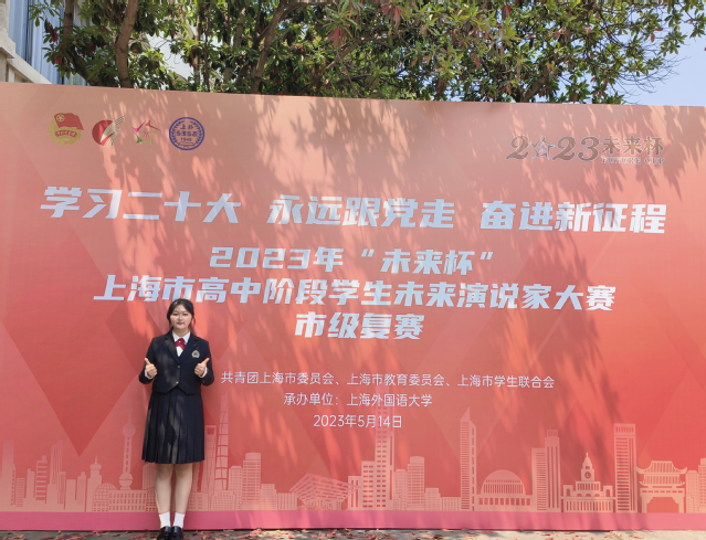 当青春与时代共舞,青年人将用磅礴的力量奏响建功新时代的最强音。为引领上海高中阶段青年学生深入学习领会党的二十大精神,领会习近平新时代中国特色社会主义思想的深刻内涵,团市委、市教委、市学联于近期开展了2023年“未来杯”上海市高中阶段学生未来演说家大赛。此次比赛主题为“学习二十大 永远跟党走 奋进新征程”。比赛分为资格赛、初赛、复赛和决赛。我校学生踊跃报名参赛,经过区级遴选,最终我校211会计班的宋婧仪同学从众多初赛选手中脱颖而出,获得2023“未来杯”上海市高中阶段学生未来演说家大赛市级复赛资格。
