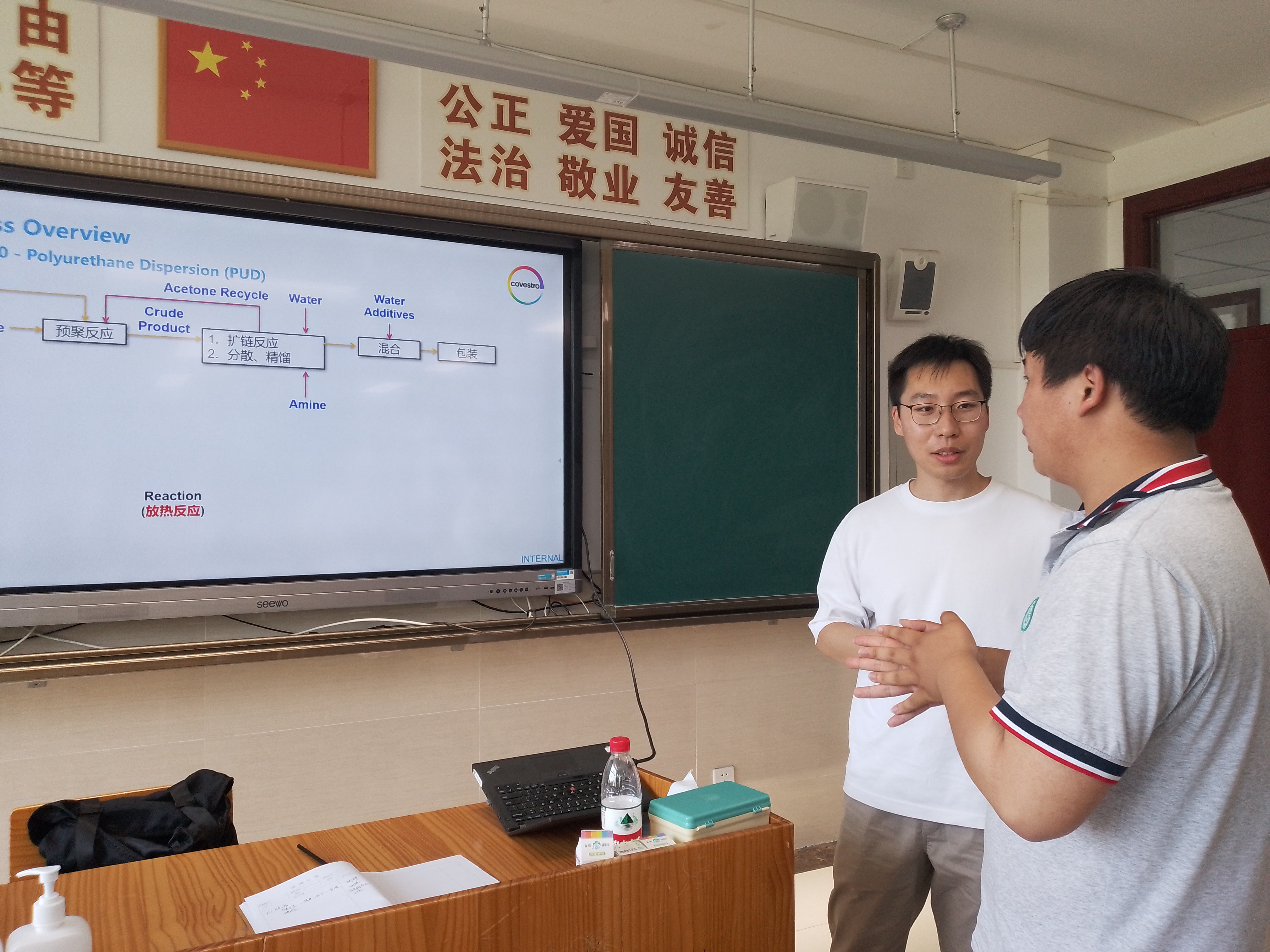 经过贾翔飞的讲解,同学们学习了PU生产工艺,知道了不同生产线的工艺区别,增强了对PU和科思创工艺流程的认知,为日后进入科思创企业PU岗位工作奠定了良好的基础。