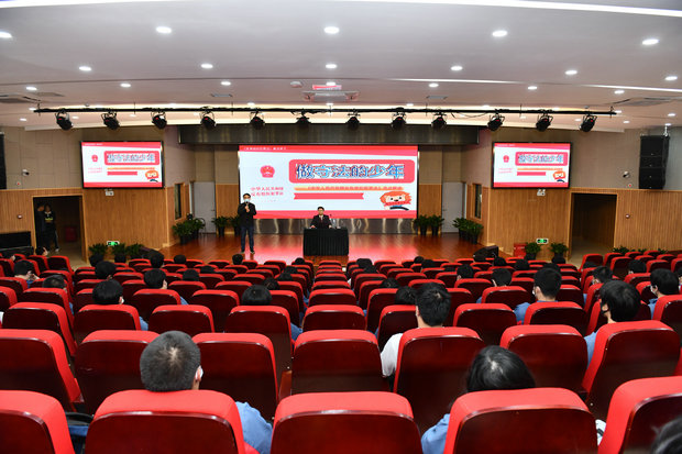 为进一步加强未成年人思想道德建设,预防和减少青少年违法犯罪,树立遵纪守法和防范违法犯罪,提高我校学生的法治意识,增强学生们“遵法、学法、守法”的能力,5月17日下午学校安保处牵头金山区法院,在学生处和各二级院校的协助下,全校学生开展了一堂普法宣传教育讲座。部分班级在班主任老师的带领下来到会议中心主会场学习,其余班级在各自班级收看视频直播。讲座由安保处主任潘志东主持,金山区法院宣讲员刘健老师主讲。