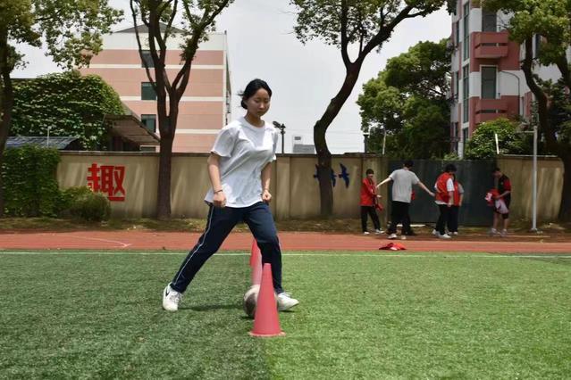 随着一声长哨开始了比赛。首先开始的是颠球,球场上的球员们踢毽子似的用脚背顶着球,一个接一个,如鱼得水,游刃有余,很快颠球就结束了,大家都满怀信心开始下一个项目:头球。球员们两人一组站在对立面,眼睛时刻注视着来球,当球一来,球员后脚用力蹬地,身体重心由后脚移向前脚的同时,快速甩头,用前额正面顶球的后中部,将球传给对面的队友,比赛顺利的进行到最后一个项目:带球过杆接力赛。运球时同学会精准控制脚部力量,眼神专注的看着球把球带向轨道,每一棒的同学都会快速流畅的绕过每一个障碍物把球运给下一个球员第二个球员给第三个直到最后一名同学把球运回终点。同学们的积极参与,认真对待,为这场比赛画上了完美的句号。