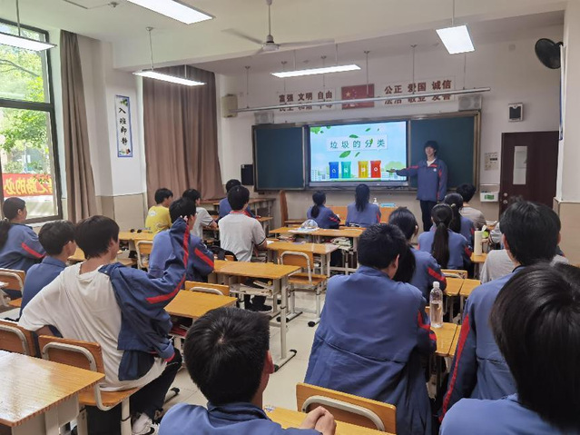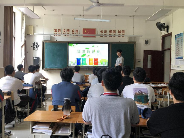 在晨会课上,每个班级的劳动委员通过PPT进行讲解,为同学们讲述了为什么要进行垃圾分类、该怎么进行垃圾分类、如何废物利用。城市中的人们每天会产生大量的生活垃圾。据新闻说,上海每年的生活垃圾有5个金茂大厦的体积那么多。垃圾的去向,是个长久以来被忽视,垃圾分为四大类:厨余垃圾、有害垃圾、可回收垃圾和其余垃圾,每个垃圾都要进入自己的“家”,这样处理起来更方便,对于环境的污染也会减少。