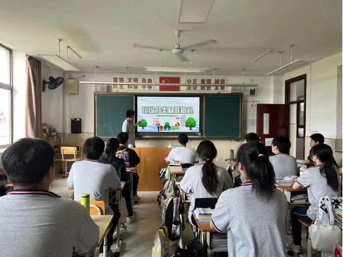 有的班级组织重温《上海市生活垃圾管理条例》,回顾三年多来实行垃圾分类投放给自己和家庭生活带来的种种变化,看看和对比前后身边的环境整治情况,展望今后垃圾分类的美好前景;有的班级组织讨论“我能为垃圾分类管理做什么”,同学们认为除了要继续按照分类要求投放垃圾外,还要减少一次性产品的使用,增加二手物品利用,优先购买可再生物品等加强资源循环利用的方法;有的年级组进行了班级间的垃圾分类自评、互评活动,用行动饯行“垃圾分类一小步,低碳生活一大步”的环保理念。