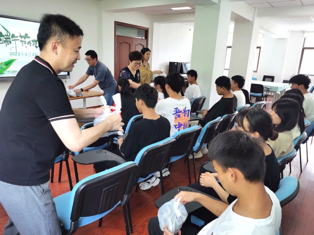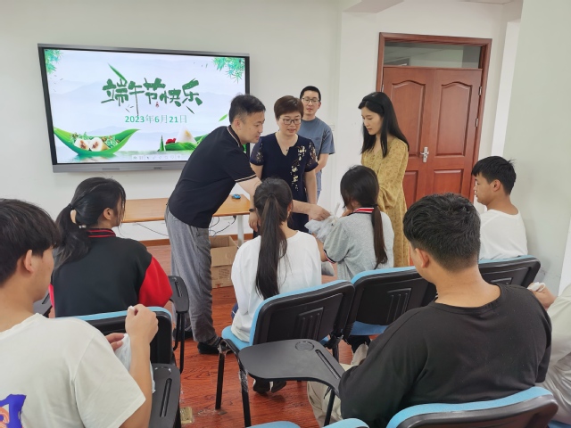 慰问活动中学生工作部部长邵喆和学生们亲切交谈,肯定大家在学业上取得的优秀成绩,勉励大家继续努力提高本领,为实习和就业做好准备,通过踏实工作回报父母和社会。团委书记彭旭东向大家介绍了端午节外出实践安排,大家将到东方绿舟参加第十届上海市龙文化全能赛,观摩精彩比赛,开展团建活动。学生们脸上洋溢着灿烂的笑容,感谢学校的关心关爱,对外出实践充满了憧憬和期待。