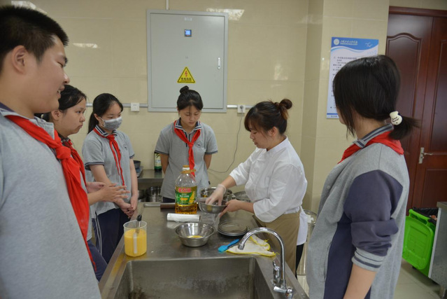 “西式面点”项目是同学们非常喜欢的体验项目,负责老师带着同学们一起体验甄选配方、称料、制作、成形、烘烤、装饰等西点制作过程,通过充满趣味的实操课程,同学们快速掌握西点制作的技术要领,在快乐中制作出美味、可口的点心,轻松学到真本领。