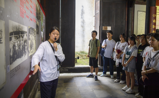 6月27日的上午,长途漫漫后迎来的胜利的曙光,夏令营师生一行来到了俗称“小延安”的新四军苏浙区旧址,讲解员讲述了皖南事变前后的故事,其中因国民党为钱生钱,而导致了通货膨胀,共产党人为了百姓不再穷困潦倒而发明了专属地区货币提高了当地民生的质量,亦有齐团长一生的传奇故事。最后,通过墙画及材料了解了中国共产党的一大会址的历史的演变、共产党的入党誓词的演变。通过抗战时期苏浙军区流传至今的小故事,彰显了“立党为公、执政为民”、“军民团结、无往不胜”在特定时期的精神内涵。“将军”,“母亲”,“英雄”,“战士”,“誓言”,一个个不朽的名字,在平凡、伟大、苍凉、激情中让人感受到了赤子之心的爱国情怀。