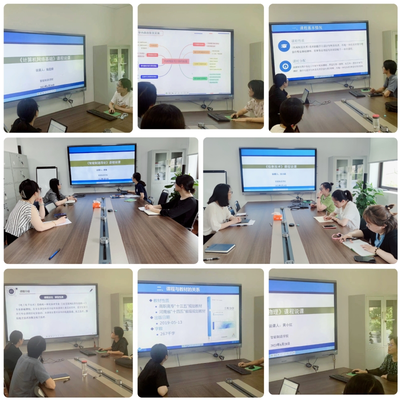 为深化专业内涵建设,确保高职专业课程教学质量,有效推进23-24-1学期高职教学工作顺利进行,智能制造学院分别于6月15日、26日、28日组织开展了“高职课程说课”活动,智能制造学院院长吴敏、副院长陈姗及涉及23级高职三年制和五年一贯制教学任务的16位老师参与此次“说课程”活动,活动由副院长陈姗主持。