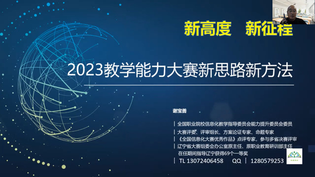 为提高工作室老师的教学能力水平及教学质量,帮助老师了解2023年教学能力大赛的变化和调整,聚焦比赛方案,进一步更新教师教学理念,落实课堂教学改革,7月9日晚,徐卫东区数控名师工作室组织学习了由全国职业院校资深评委谢宝善教授主讲的“新高度 新征程——2023教学能力大赛新思路新方法”的主题讲座。