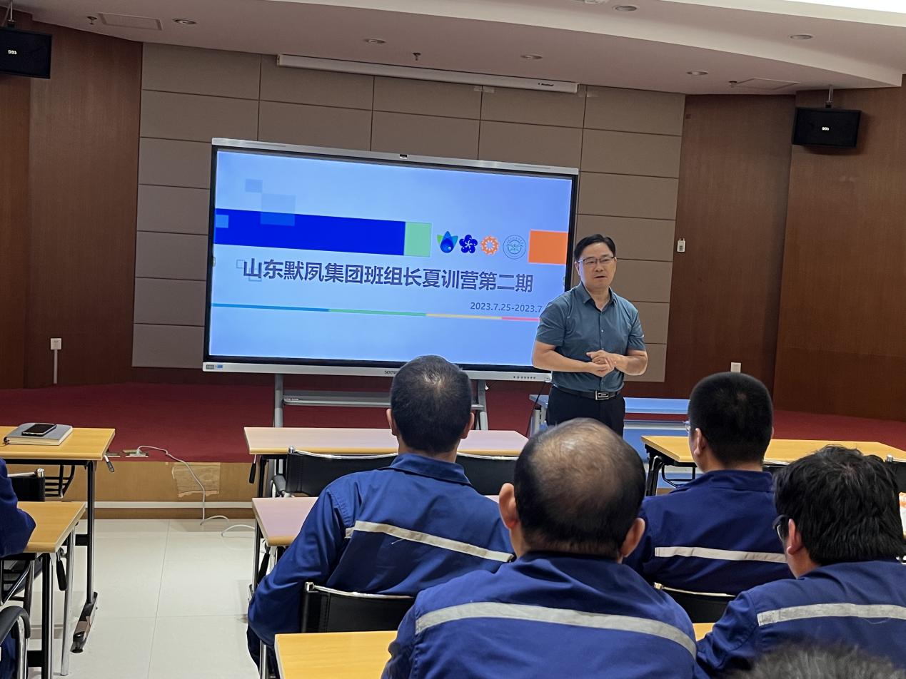 7月31日,山东默夙投资集团有限公司班组长(骨干员工)培训(第二期)闭营典礼在上海现代化工职业学院化工实训大楼报告厅举行! 化学工程学院院长胡迪君、培训中心主任顾建平、默夙集团高质量研究所部门经理王云龙、王钊、默夙集团35位班组长与会参加。