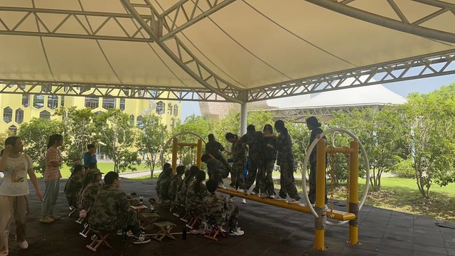 团结合作,奋力拼搏。8月9日上午,学生们在绿舟拓展训练营地,分别完成了徒手营救,礼让通行、突破封锁线,防空警报、极速60秒等活动。“礼让通行”,持有随机数字卡牌的同学们要在狭窄的“独木桥”上,在不掉下桥的情况下通过互换位置使得卡牌数字自右向左依次递减。“徒手营救”,由小组人员合作搭人梯,翻越一堵3米2高的木墙,男女同学搭配,高矮胖瘦协作,同学们分工明确、有序配合,克服困难,赢得胜利。在东方绿舟展现了智慧和团队合作的精神,留下了共同拼搏与活力满满的青春印记。