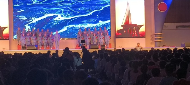 观赏红色情景歌舞剧,赓续红色基因。8月9日晚上,同学们观赏了由新旅合唱艺术团表演的大型歌舞音乐《长征组歌》,长征是宣言书,长征是播种机。整个组歌共分为《告别》《突破封锁线》《遵义会议放光辉》《四渡赤水出奇兵》《飞越大渡河》《过雪山草地》《到吴起镇》《祝捷》《报喜》和《大会师》10个部分,红色经典史诗《长征组歌》以艺术的形式再现了长征艰难的历程,新旅合唱艺术团以新安旅行团的老团员和上海歌剧院的退休演员为骨干组成了用音乐舞蹈生动再现峥嵘岁月的红色经典。“新安旅行团”是一个光荣的革命团体,他们在国之危难中踏上征途,以长途修学旅行的方式,践行陶行知“生活即教育,社会即学校”的教育思想,将个人成长与国家命运紧密结合,宣传抗日救国主张,以文艺为武器,唤起千百万民众共赴国难,谱写了少年儿童革命史上的壮丽篇章。