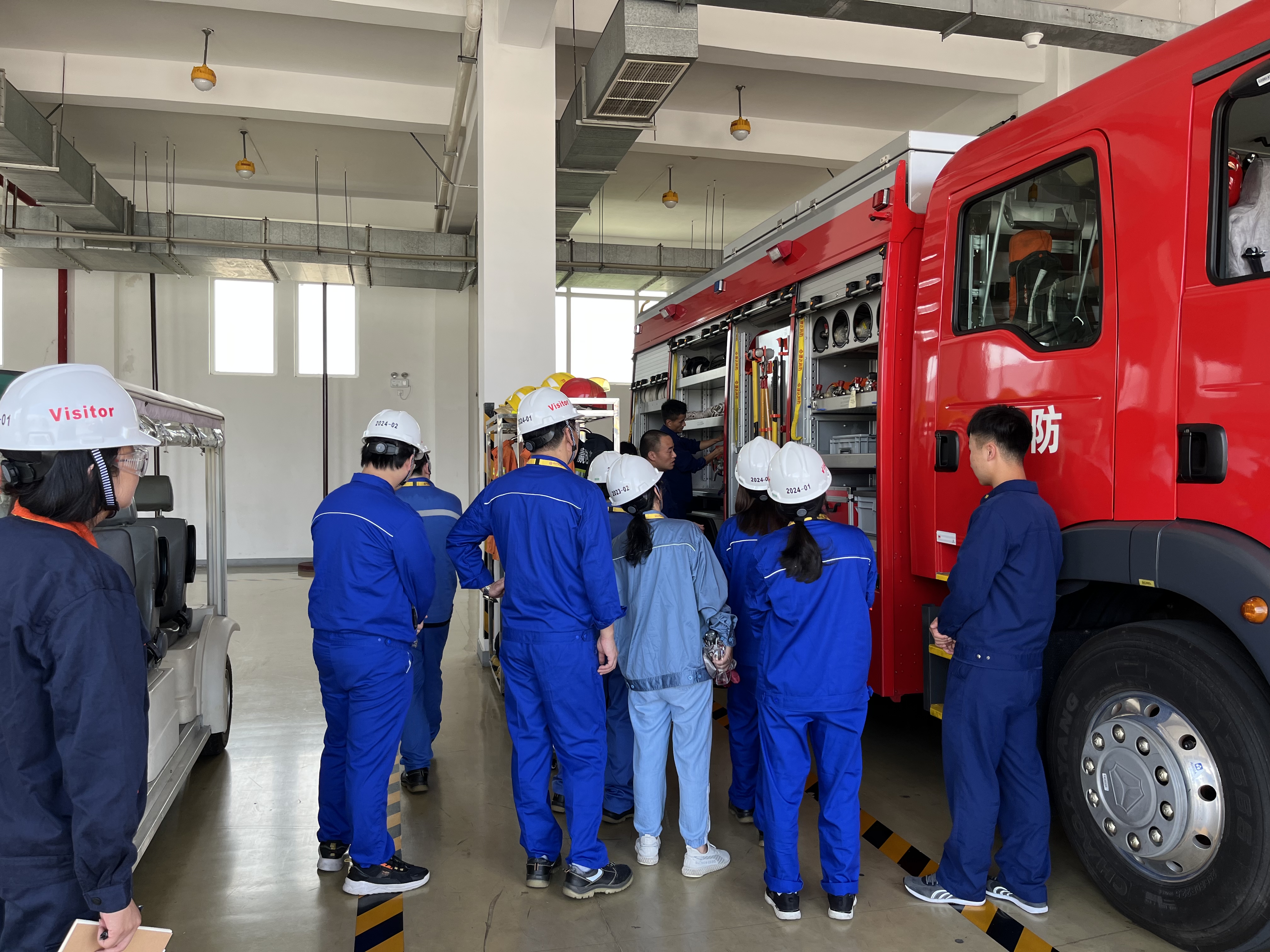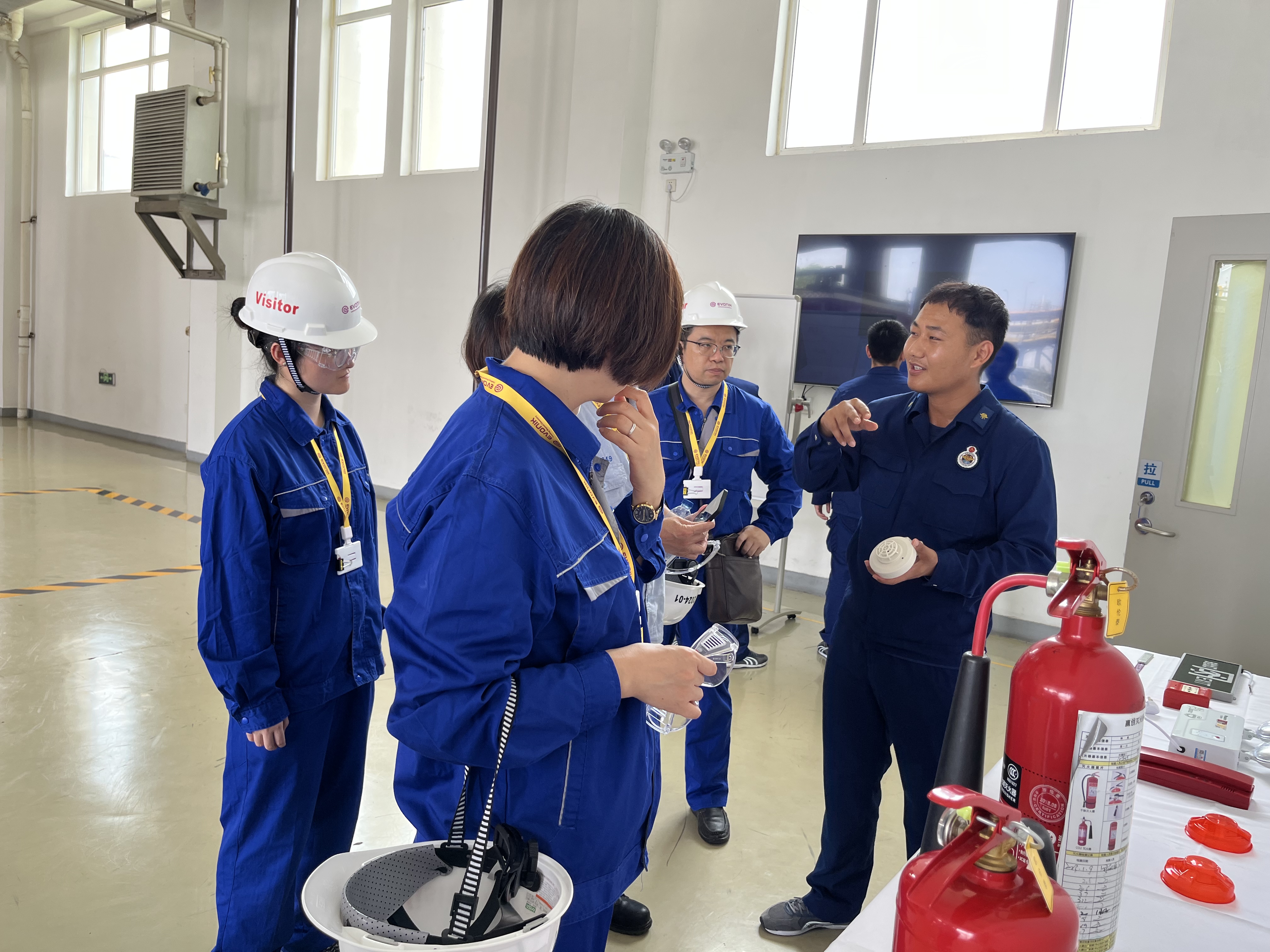 袁主任带领教师队伍参观了工厂中控室、实验室及各类生产装置,大家近距离地感受赢创的工业生产设备和现代化的生产车间,并了解到赢创的产品在日常生活中扮演的重要的角色。紧接着老师们来到企业专职消防队参观,消防队员向各位老师介绍了常规消防设施的性能和使用方法,老师们认识了消防车、消防指挥车,知晓了消防队的应急处置方针及如何快速做出应急响应。消防队员对老师们在参观过程中的疑问和感兴趣的问题进行了详细、耐心的解答和交流。