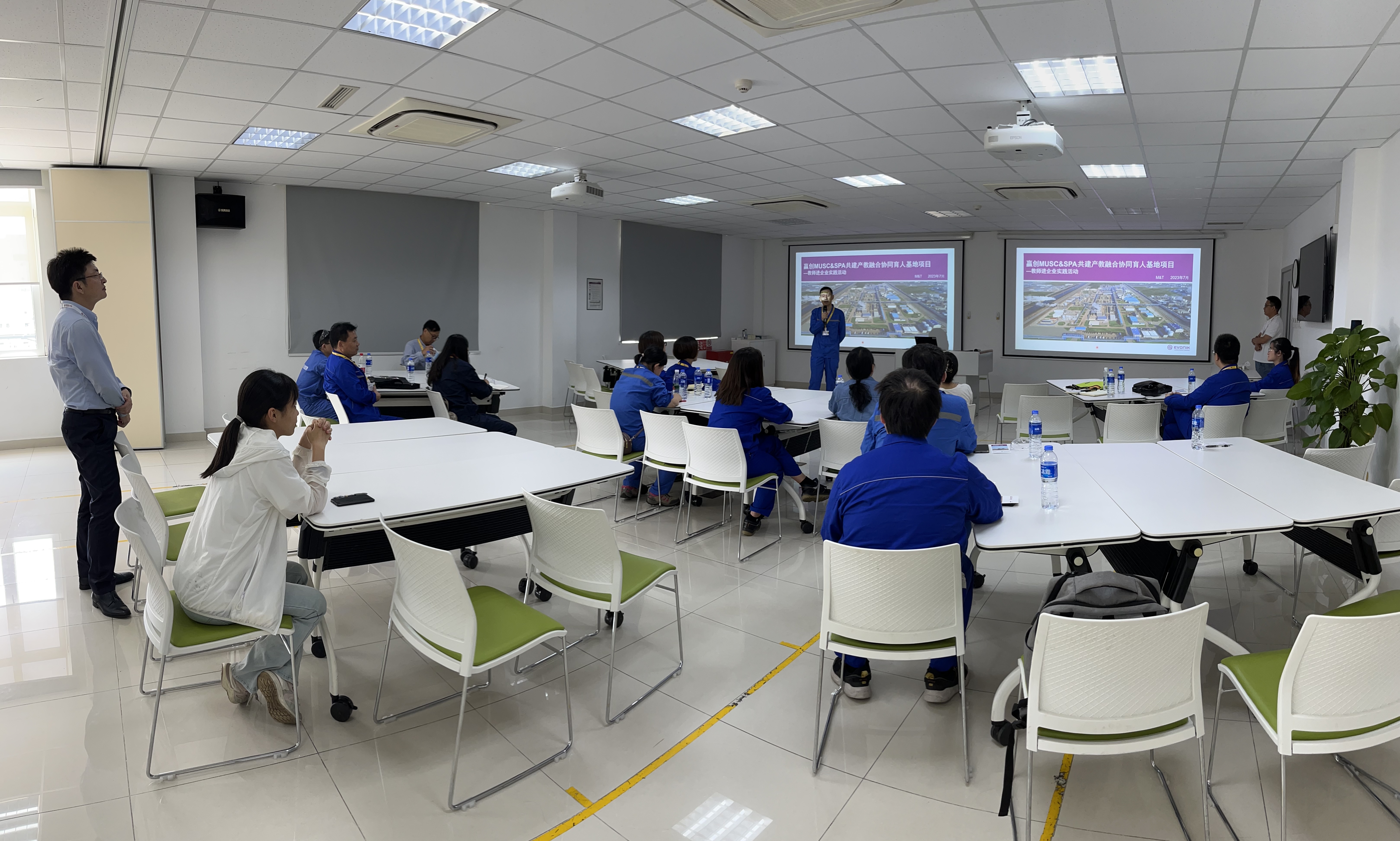 为进一步加强应用技能型人才培养实效,优化专业群内涵建设,衔接化工生产前沿技术,2023年8月15日,由化学工程学院副院长沈端带队,学院部分教师赴赢创特种化学(上海)有限公司参观学习,开展赢创MUSC&SPA共建产教融和协同育人基地项目--教师进企业实践活动。