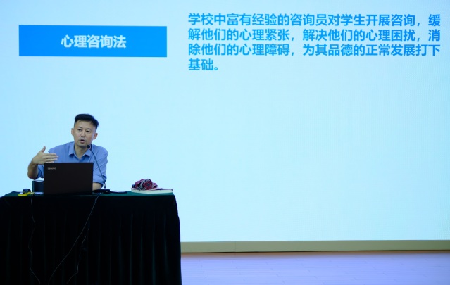 学工部部长邵喆分享了《德育过程、方法和评价》,邵喆激情和生动地给全校班主任老师讲述了德育过程的多种理论、基本要素和基本矛盾,在德育方法中,他提到了六种传统的德育方法、三种新兴的德育实践以及他国新型德育实践,最后,邵喆从国家“大思政”的高度,提出了不能把德育只局限于德育活动,更应注重德育的过程方法和评价的落地。安保处主任潘志东主讲《班主任安全工作》。讲座中,潘志东围绕十三大安全主题教育内容、四大安全教育的途径、五大安全主题的关键落脚点和学生普遍存在的安全问题以及原因分析给各位班主任老师进行了分享,各位班主任老师再一次感悟到安全工作是一切工作的生命线。