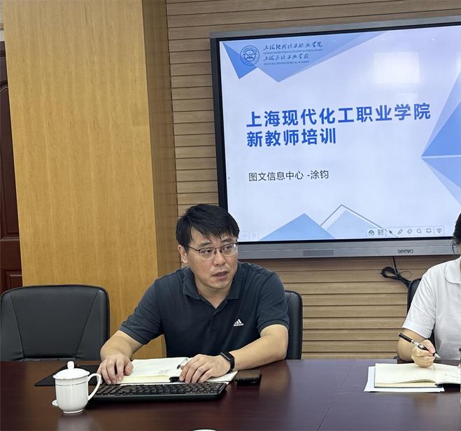图文信息中心主任涂钧为新进教师作学校信息系统培训,介绍有线网络、无线网络、校园网站、移动校园APP、VPN、FTP系统、教室希沃一体机的使用,并且对网络信息安全、预防电信诈骗等内容进行提醒警示,进一步提升新进教师对网络安全的防范意识。