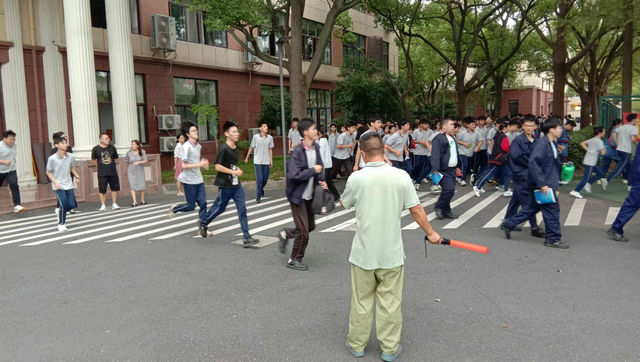 上午7:55分,各班教室拉响防空警报声,疏散活动准时开始。各班学生在听到警报声后,在班主任的带领下,快速、有序地开始撤离教室,奔向指定的集合点。学生处、二级学院的主要负责人和安保处人员也第一时间到达现场,参与疏散人员的引导的指挥工作。在各部门通力协作下,全体学生在5分钟内全部安全疏散到操场集合点。整个过程,做到了不落下一个人,没有一个人受伤,达到了安全疏散演练的目的和效果。