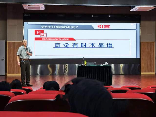 讲座伊始,董奇以“为什么要做研究”这个问题切入,直言“直觉有时不靠谱!”逐渐引入到“什么是科研”,强调科研是探寻规律的活动,其灵魂是创新思维。对于“怎样写得一手好文章”这个教师普遍关注的问题,他从“是否只有文笔好才能写出好的论文”“是否理工类教师写科研论文很弱势”“怎样才能写出质量较高的科研论文”“我的文章自我感觉不错可为何被拒”这四种困惑破题,并用诸多的案例来引证,并总结了写出好文章的诀窍,即“做、改、问、看、学”。