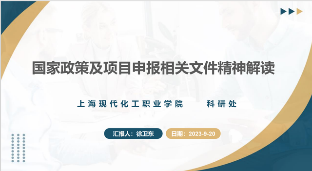 徐卫东的汇报分为国家政策、国家及市级项目申报要求两个方面。国家政策文件对于提升教师自主创新能力,把握科研发展方向至关重要,他就学校人才培养模式、课程建设、教材及资源库建设、师资队伍建设、实训基地建设、社会服务与育训一体、国际化发展以及课程思政等诸多方面逐一进行相关文件精神解读。并就科研处目前推进的示范性虚拟仿真实训基地、职业教育专业教学资源库建设、教育部重点一流核心课程建设等项目进展进行汇报。