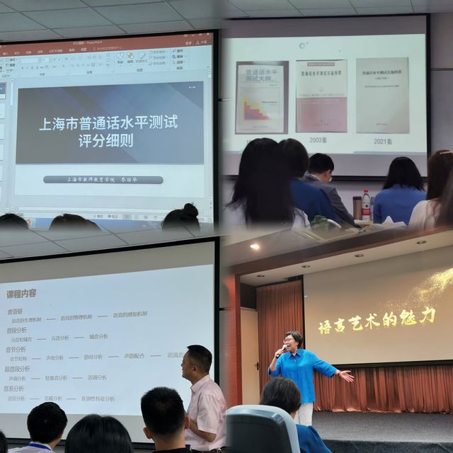此次培训考核内容十分丰富,主办方邀请了诸多专业领域内颇具声望的老师,例如华东师范大学陈军教授,上海电影译制作厂配音演员、导演丁建华等,课程考核内容涉及普通话水平测试的方方面面,从法律法规、相关文件、测试大纲的详细解读,到普通话水平测试的具体评分细则,从普通话水平测试测前辅导,到不同等级的普通话水平测试语音材料的实操评定练习,从普通话语音基础知识和常用国际音标,到普通话水平测试要点及培训策略等。