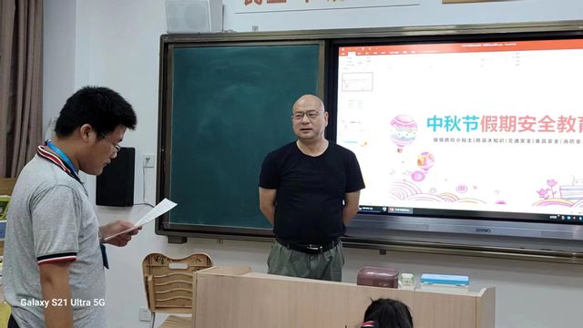 首先,班主任何仁方通过播放图片、视频等形式向同学们介绍了安全的重要性;其次何仁方围绕“防范秋季流行疾病”、 “道路交通安全”、“安全用电用气”、“饮食卫生”、“安全文明上网”等问题对学生进行放假前的安全教育,提高学生的安全意识,让学生在遇到危险时能采取一定的措施,保护自己,真正把安全教育落到实处;之后,由孩子们自己上台表演一些安全警示情景剧,增强学生的安全意识和法制观念,提高学生防范安全事故的能力;随后,何仁方采用知识问答等形式让同学们加强对安全知识的认识;最后,班会在同学们“找找身边安全隐患”的讨论声中结束,大家联系生活实际,众说纷纭,各抒所见,总结出了不少隐患。同时何仁方发放学校印发的《中秋、国庆长假致家长书》,大力宣传假期安全教育的重要性,建议学生家长要教育好、监管好孩子,杜绝任何安全事故的发生。