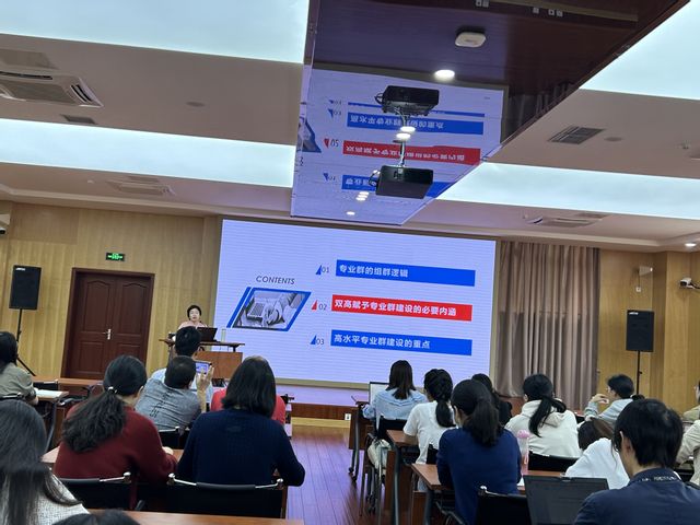 建设中国特色高水平高职学校和专业群是学校未来较长时间内的重点建设目标和任务,落脚点在专业群建设。朱教授从共性论、合力论、多点论、官方论四个方面就专业群的概念进行了阐述,她指出专业群建设必须紧抓七个关键要素,即面向区域或行业重点产业、依托优势特色专业、对接产业动态调整、专业资源整合和结构优化、专业群集聚效应和服务功能、人才培养供给侧和产业需求侧要素全方位融合、发展跨专业教学组织等。并就高水平专业群的组群逻辑、双高赋予专业群建设的必要内涵及建设重点进行了详细分享。她强调高水平专业群建设必须以科学组群为前提,分为依据产业群发展、依据岗位群发展、依据群内不发展如学科相近等三大组群巡逻。进一步指出,高职学校应将专业群建设上升到质量发展、特色发展和品牌发展的战略高度,抓住专业群资源相关性、课程重构、因材施教、柔性管理等重点,关注专业群“高”、“动”两个核心特征,早启动、早谋划。